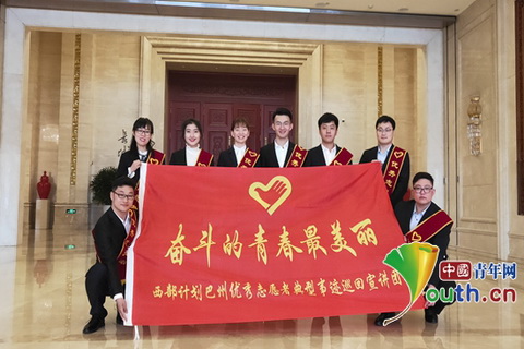 图为巴州西部计划优秀志愿者宣讲团成员合影,右二为国产一区二区日本在线研支团团长佟胜军。国产一区二区日本在线研究生支教团 供图